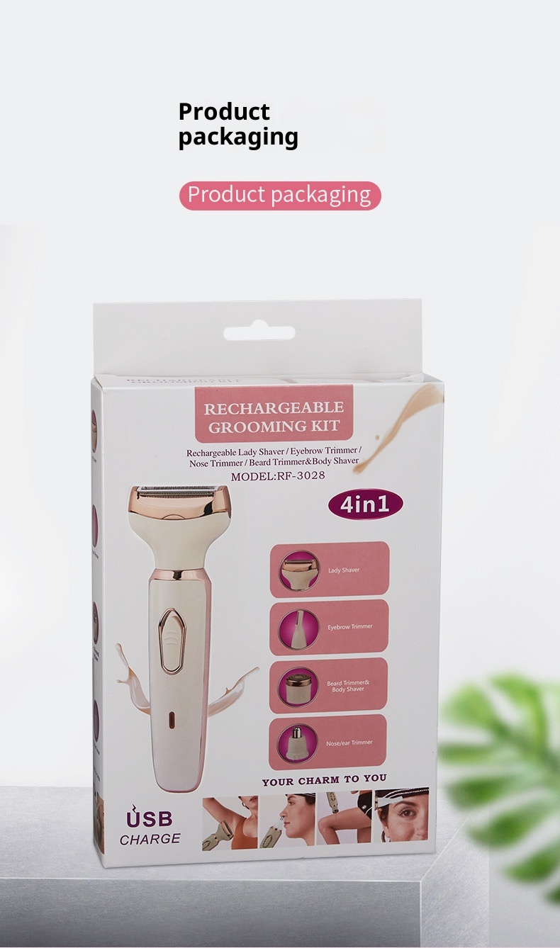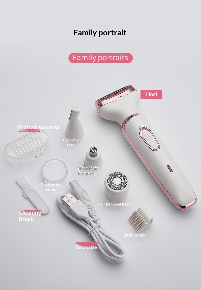 Main unit *1 Protective cover *1 Eyebrow razor *1 Nose hair trimmer *1 Protective cover *1 Shaving razor *1 Cleaning brush *1 Guide comb *1 Data cable *1
